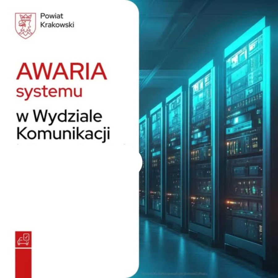 Informujemy, że ze względu na awarię zasilania do odwołania nie funkcjonują wszystkie filie Wydziału Komunikacji Starostwa Powiatowego w Krakowie!