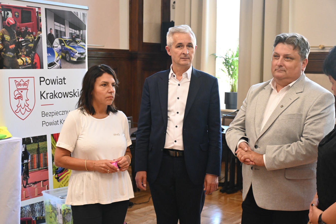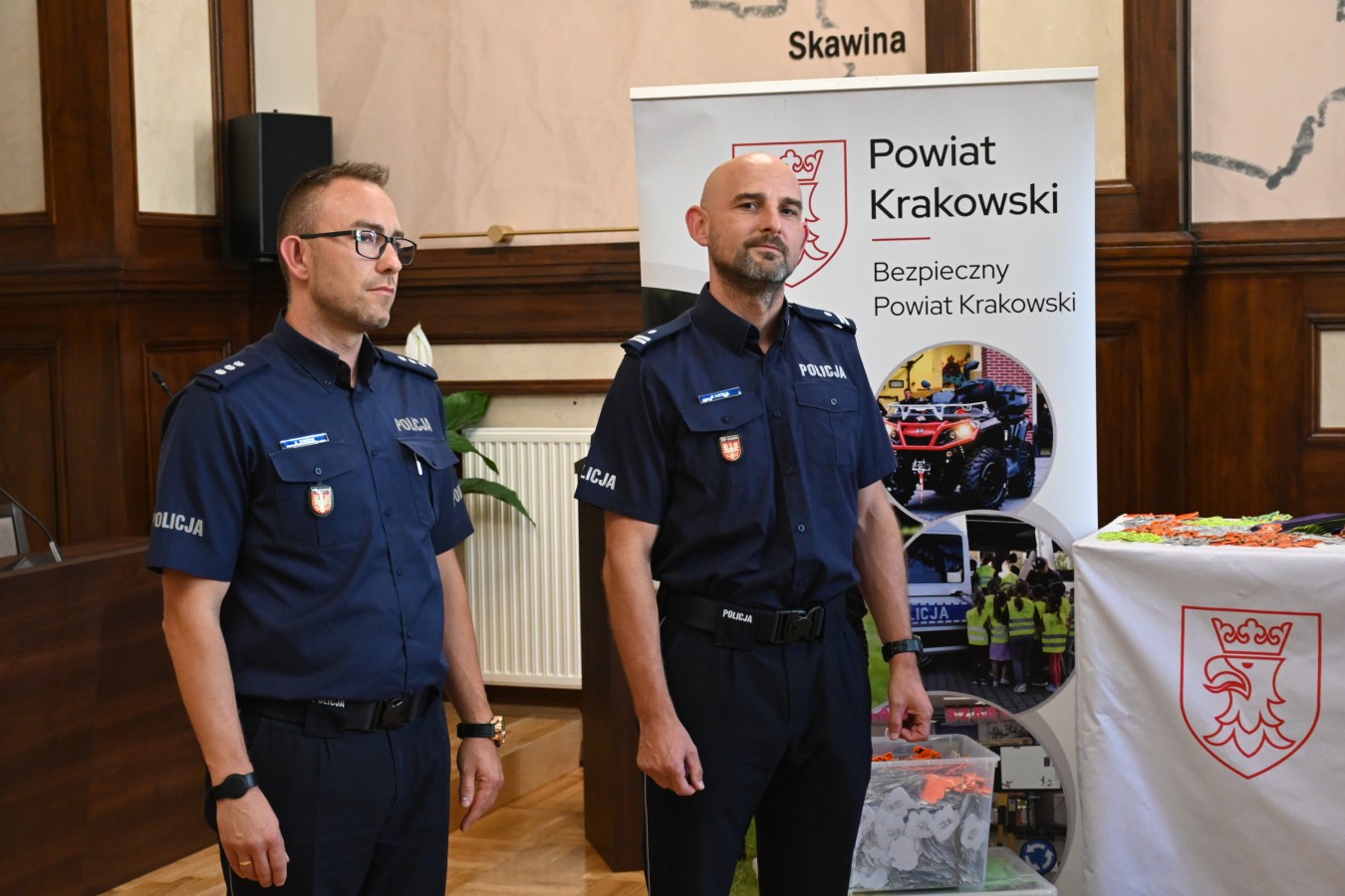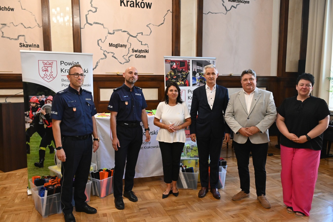 W trosce o bezpieczeństwo dzieci na drogach, przedstawiciele władz Powiatu Krakowskiego – Elżbieta Burtan, Starosta Krakowski, Grzegorz Stokłosa oraz Janusz Pasternak, Członkowie Zarządu Powiatu w Krakowie – przekazali dziś Komendzie Powiatowej Policji w Krakowie ponad 9 tysięcy elementów odblaskowych. Wśród nich znalazły się opaski, kamizelki oraz zawieszki, które już wkrótce trafią do pierwszoklasistów w szkołach podstawowych na terenie powiatu.