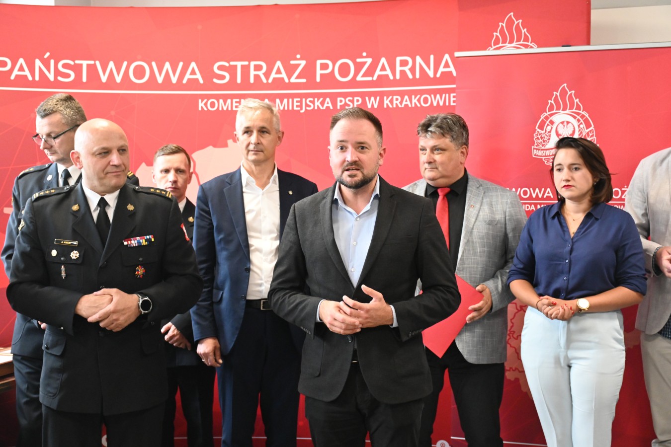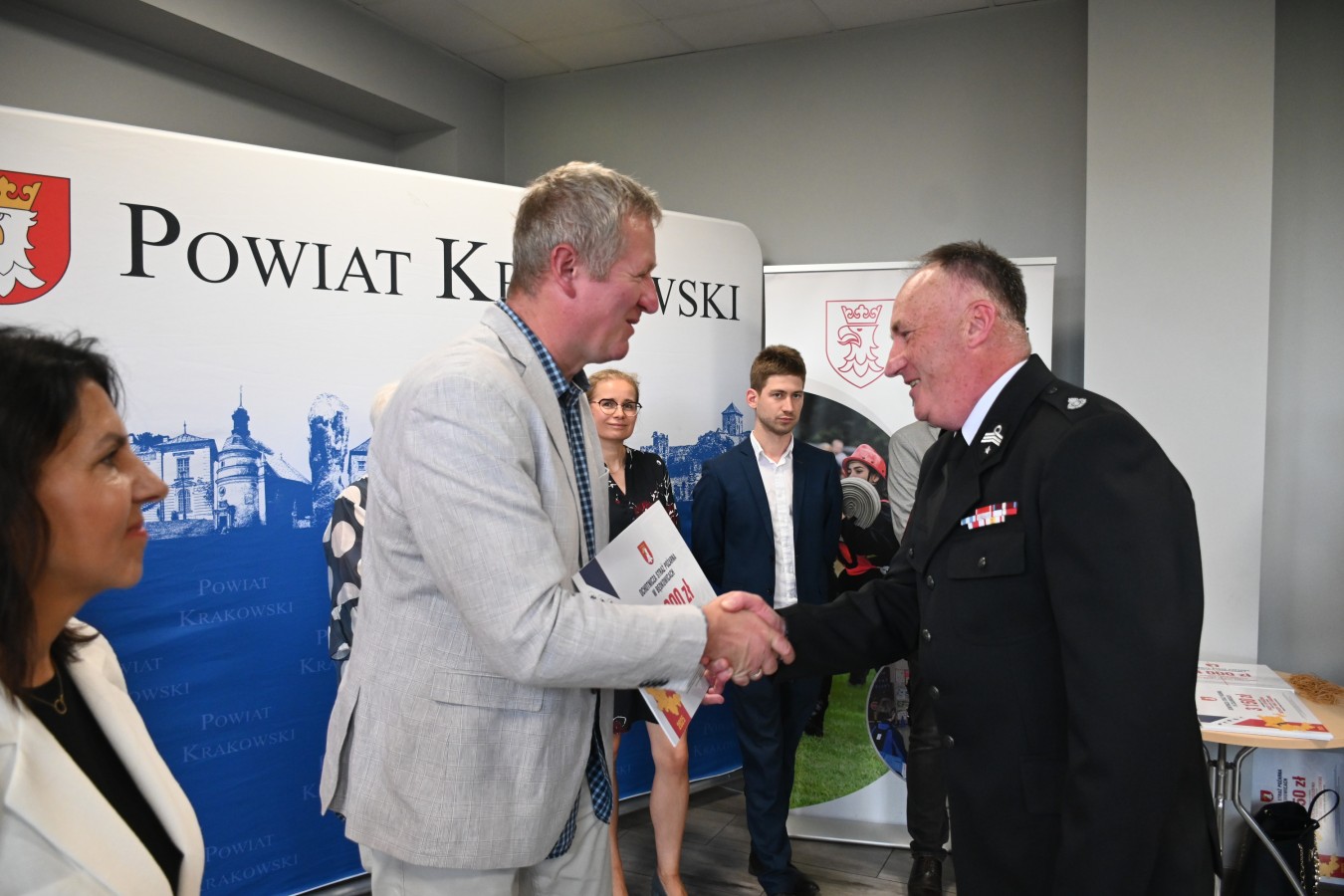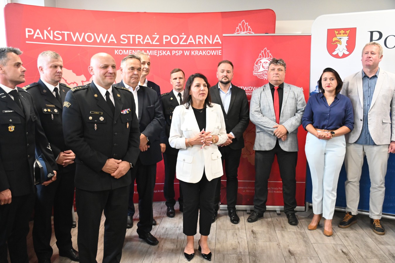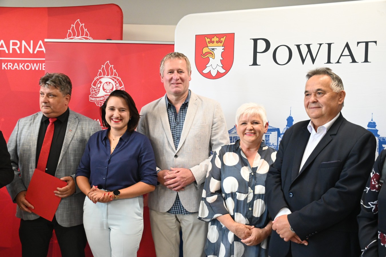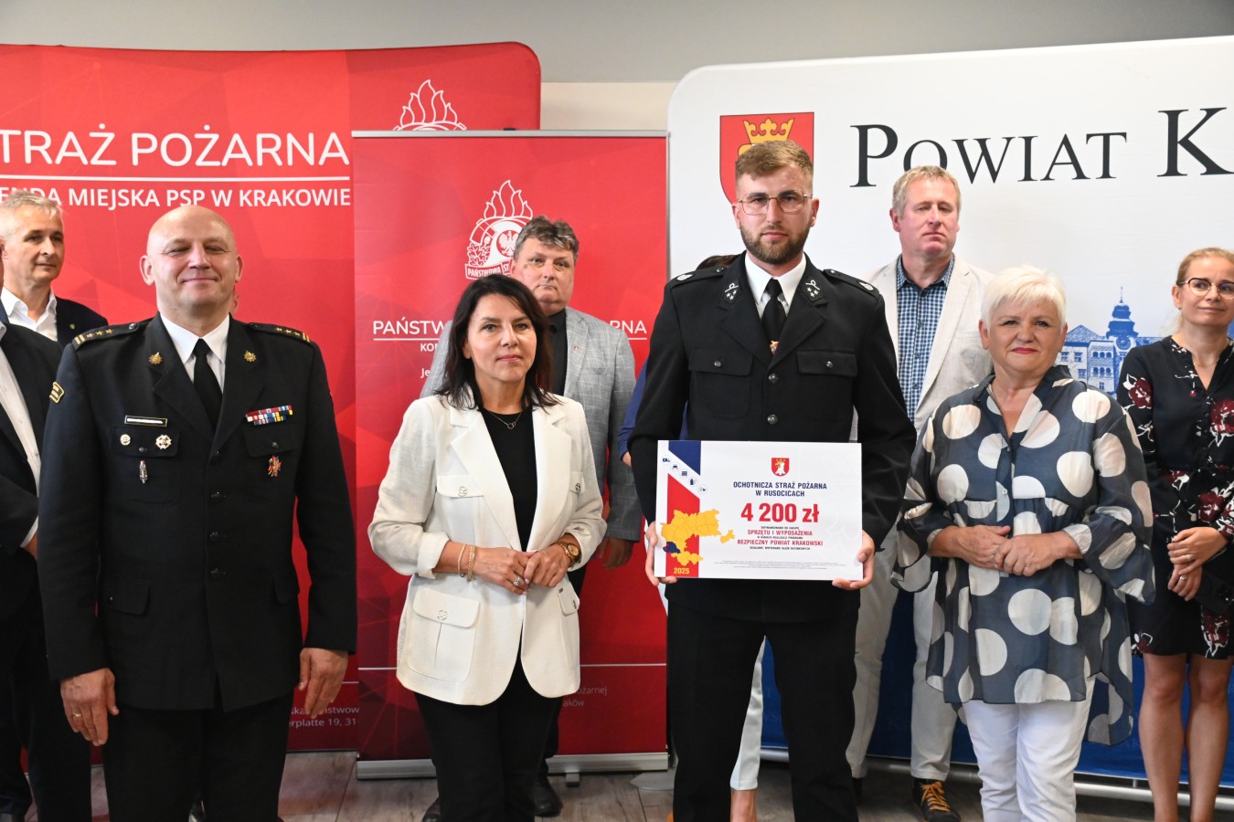 15 lipca 2025 r. na terenie Jednostki Ratowniczo-Gaśniczej Nr 5 w Krakowie odbyło się uroczyste wręczenie promes z dofinansowaniem do zakupu sprzętu i wyposażenia lub do zakupu samochodów i innych środków transportu w ramach działania „Wspieranie służb mundurowych” z programu „Bezpieczny Powiat Krakowski”