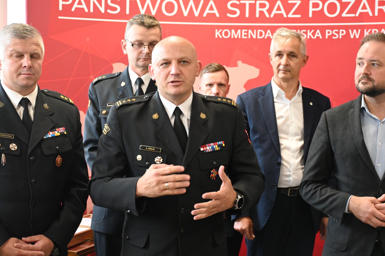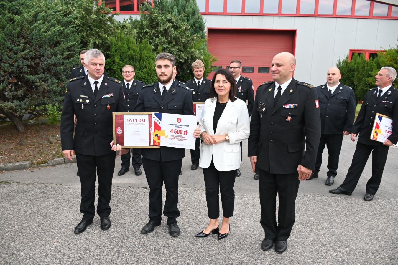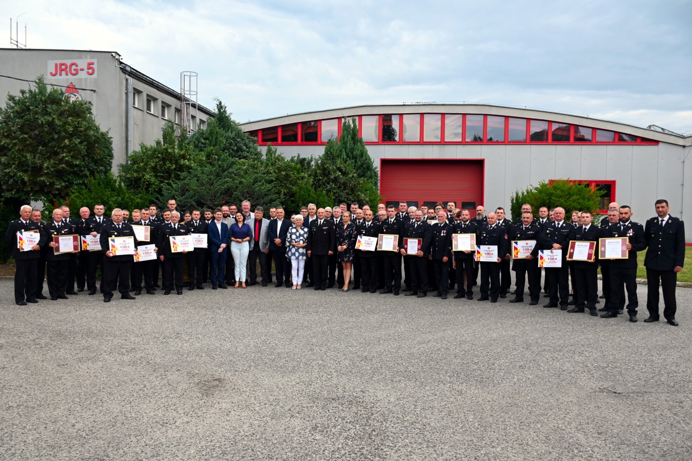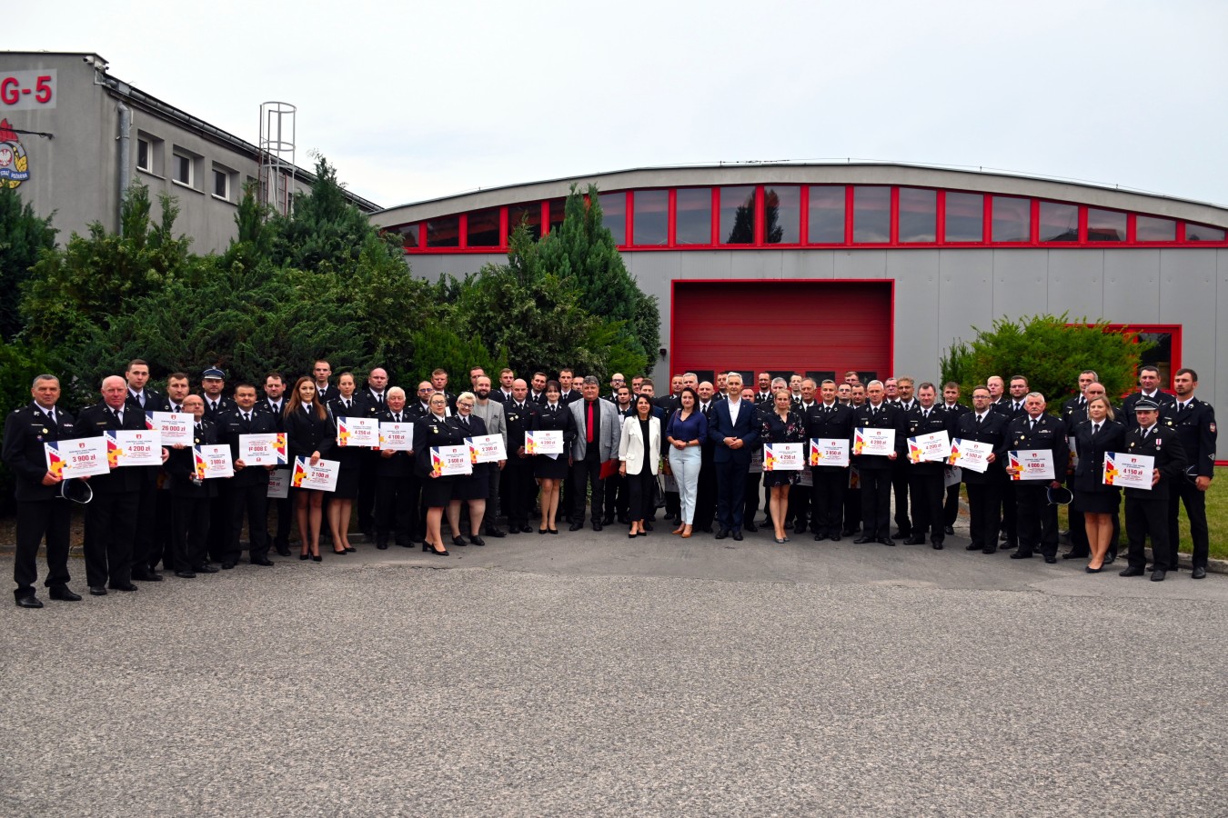 15 lipca 2025 r. na terenie Jednostki Ratowniczo-Gaśniczej Nr 5 w Krakowie odbyło się uroczyste wręczenie promes z dofinansowaniem do zakupu sprzętu i wyposażenia lub do zakupu samochodów i innych środków transportu w ramach działania „Wspieranie służb mundurowych” z programu „Bezpieczny Powiat Krakowski”