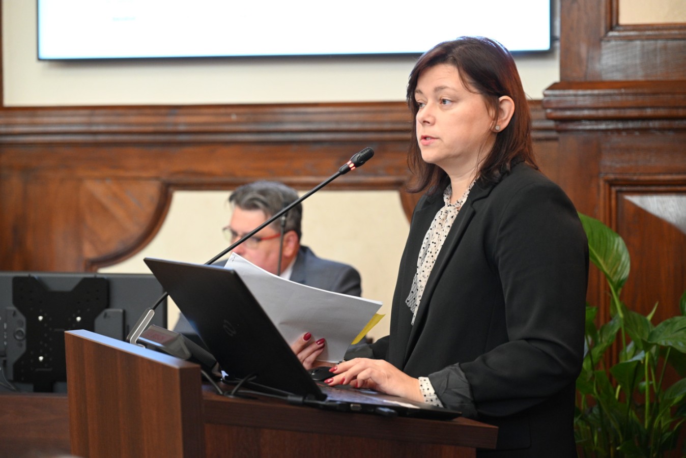 Sesja rozpoczęła się od omówienia sytuacji w obszarze edukacji w powiecie krakowskim. Dyrektor Wydziału Edukacji – Pani Beata Kwatera – przedstawiła informację dotyczącą bieżących wyzwań oraz działań podejmowanych na rzecz rozwoju oferty edukacyjnej i inwestycji infrastrukturalnych w szkołach prowadzonych przez Powiat.